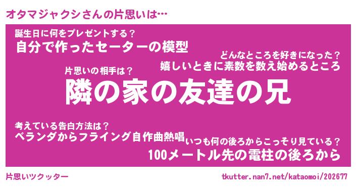 | ポケモン風あだ名 | 『オタチュウ』『オタマダネ』 |