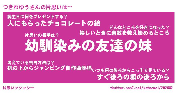 | 男性向けラノベタイトル風あだ名 | 『つきわゆうの憂鬱』 |