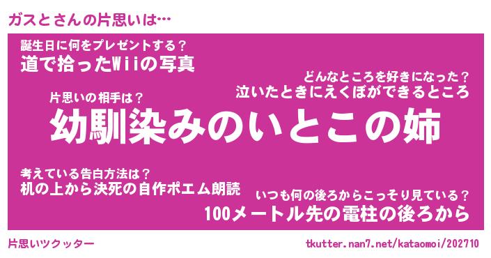 | ヘコむあだ名 | 『ガスにゅー』『豆乳』『ガスお』 |