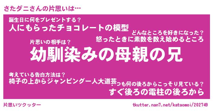| 意味不明あだ名 | 『ペロリンさたダニ』『永久保存さたダニ』 |