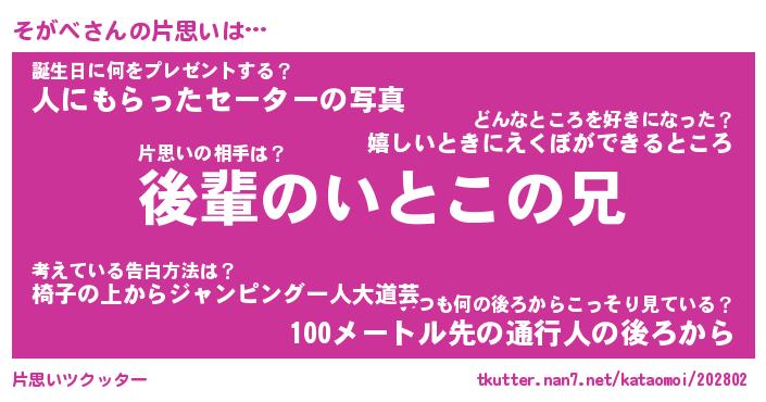 | 意味不明あだ名 | 『ペロリンそがべ』『そがべフォーエバー』 |