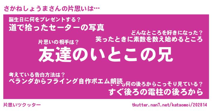 | ヘコむあだ名 | 『さかにゅー』『牛乳』『さかっぺ』 |