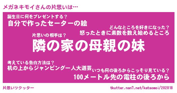| 料理風あだ名 | 『ほっこり♪メガネキモイの味噌そぼろ煮』 |