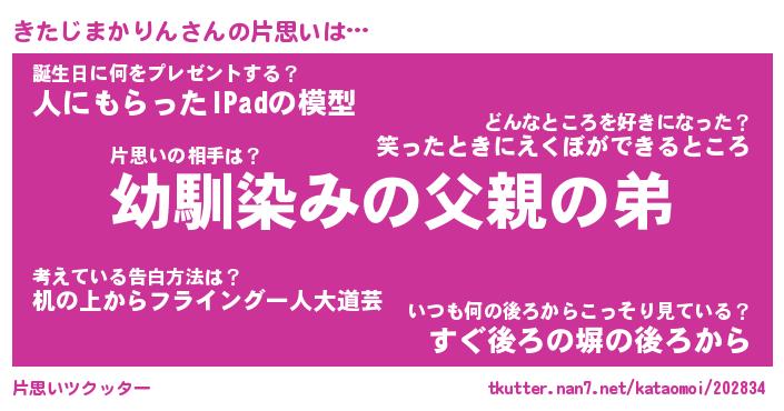 | 男性向けラノベタイトル風あだ名 | 『きたじまかりんの憂鬱』 |