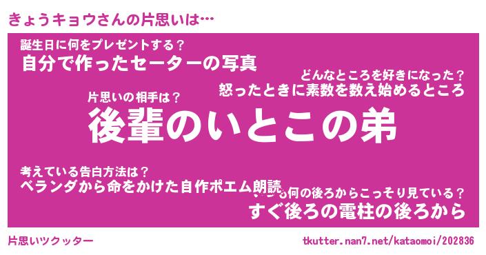 | ヘコむあだ名 | 『きょもー』『つくし』『きょっ子』 |