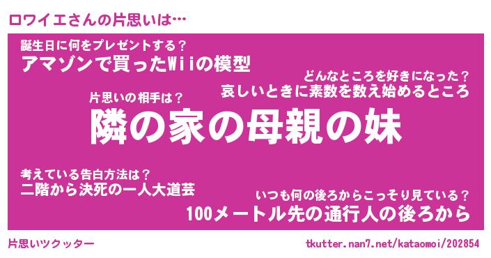 | ヘコむあだ名 | 『ロワにー』『なまこ酢』『ロワっぺ』 |