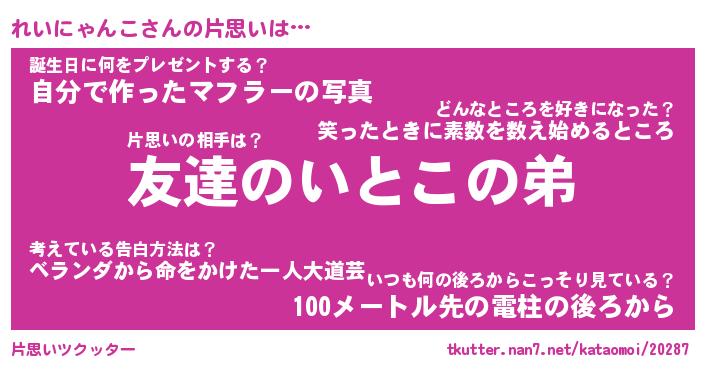 | ヘコむあだ名 | 『れいにゅー』『つくし』『れいお』 |