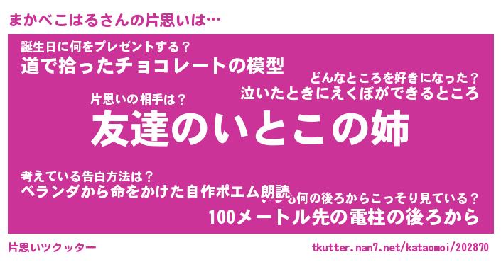 | 胡散臭い通販商品みたいなあだ名 | 『億万長者になれる水晶球…その名も「まかべこはる」』 |