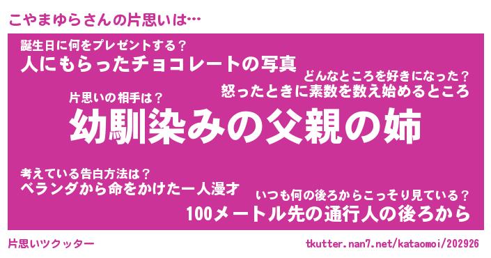 | 女子向けラノベタイトル風あだ名 | 『(仮)こやまゆらのやんごとなき事情』 |