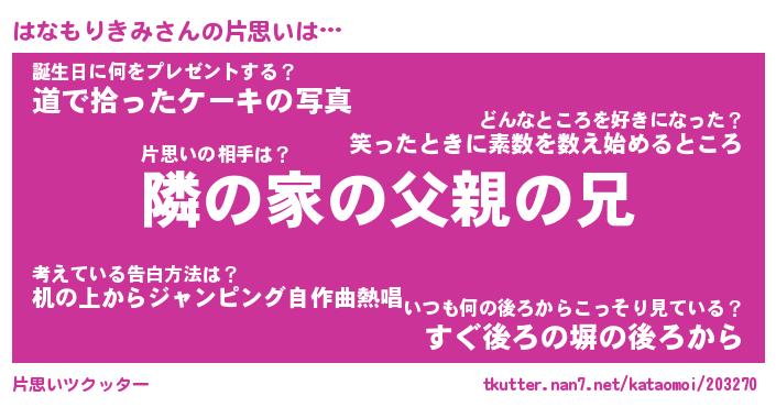 | ヘコむあだ名 | 『はなふぇ~』『豆乳』『はなっちょ』 |