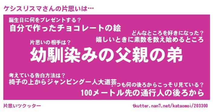 | ヘコむあだ名 | 『ケシふぇ~』『つくし』『ケシ太郎』 |