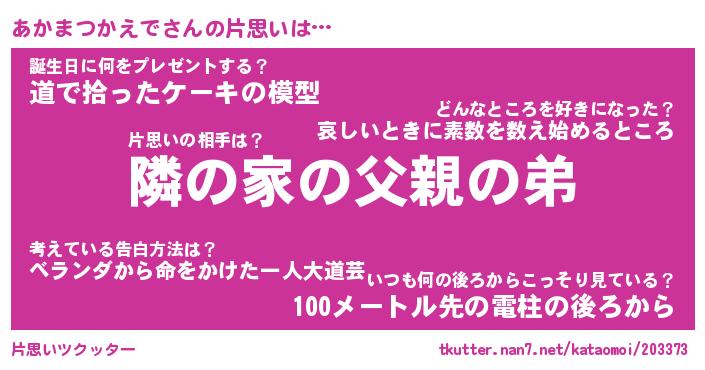 | 胡散臭い通販商品みたいなあだ名 | 『必ず成功する水晶球…その名も「あかまつかえで」』 |