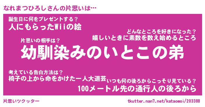 | ツイッター | なれまつひろしさんのツイッターID『renkon_kun』 |