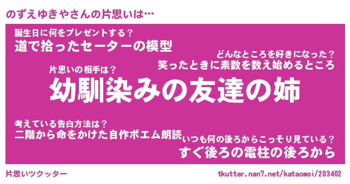 | 肩書あだ名 | 『のずえゆきや御曹司』 |