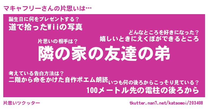 | 胡散臭い通販商品みたいなあだ名 | 『必ず成功する霊験あらたかなお札…その名も「マキャフリー」』 |