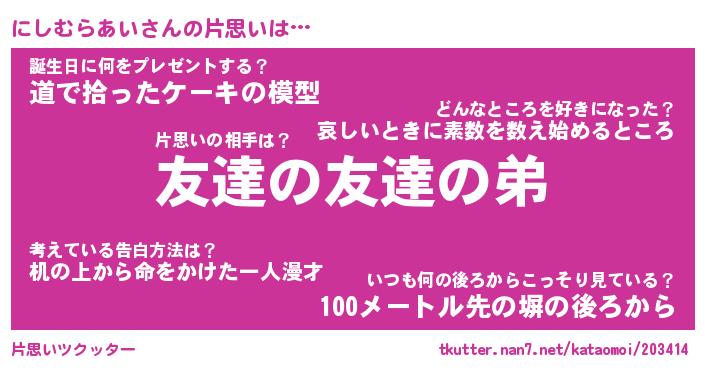 | 胡散臭い通販商品みたいなあだ名 | 『億万長者になれる霊験あらたかなお札…その名も「にしむらあい」』 |