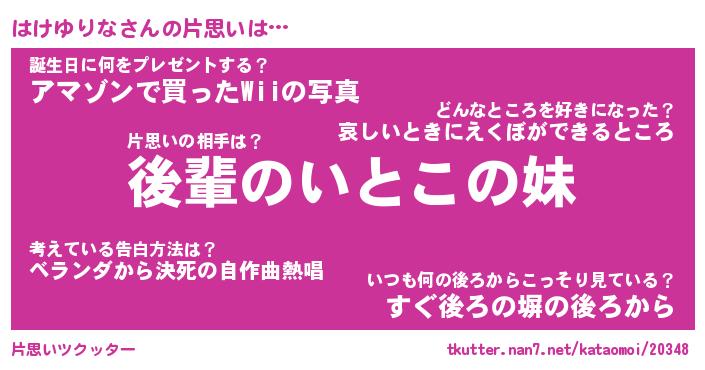 | 伝説のあだ名 | 『封印されしスナイパーはけゆりな』 |