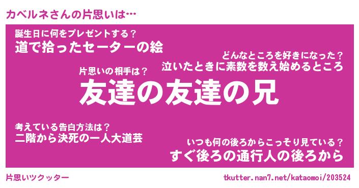 | 胡散臭い通販商品みたいなあだ名 | 『億万長者になれる霊験あらたかなお札…その名も「カベルネ」』 |