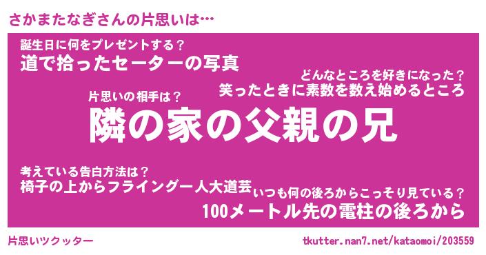 | 肩書あだ名 | 『さかまたなぎCEO』『さかまたなぎ大統領』 |