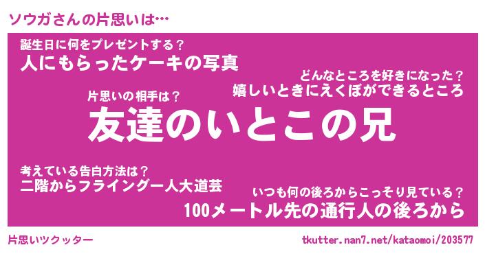 | 意味不明あだ名 | 『ペロリンソウガ』『ソウガフォーエバー』 |