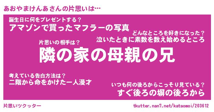 | ヘコむあだ名 | 『あおにー』『なまこ酢』『あお太郎』 |