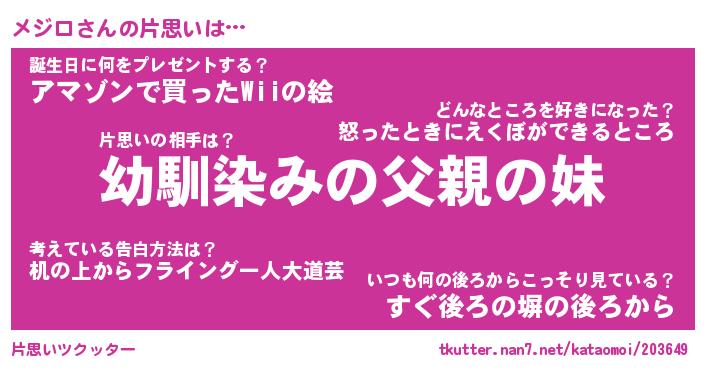 | ヘコむあだ名 | 『メジにゅー』『なまこ酢』 |