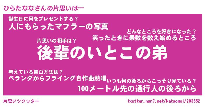 | 伝説のあだ名 | 『封印されしスナイパーひらたなな』 |