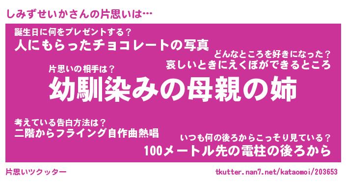 | 意味不明あだ名 | 『ペロリンしみずせいか』 |