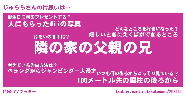 | 胡散臭い通販商品みたいなあだ名 | 『必ず成功する水晶球…その名も「じゅらら」』 |