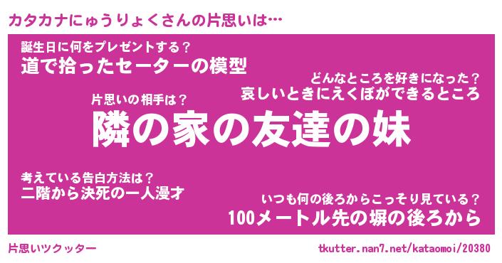 | 男性向けラノベタイトル風あだ名 | 『カタカナにゅうりょくの憂鬱』 |