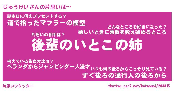 | 女子向けラノベタイトル風あだ名 | 『じゅうけい姫と円卓の騎士』 |