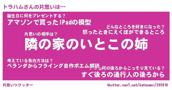 | 男性向けラノベタイトル風あだ名 | 『トラハムの憂鬱』 |