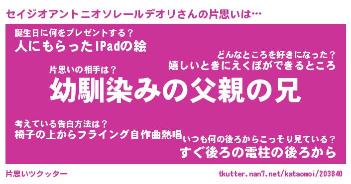 | 恥ずかしいあだ名 | 『プリティーセイジオアントニオソレールデオリ』 |