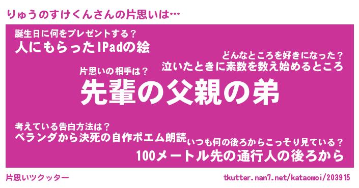 | 男性向けラノベタイトル風あだ名 | 『りゅうのすけくんの憂鬱』 |