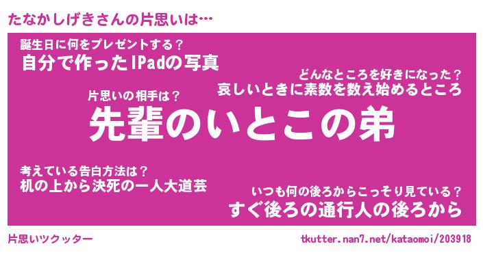 | 胡散臭い通販商品みたいなあだ名 | 『モテモテ間違いなし水晶球…その名も「たなかしげき」』 |