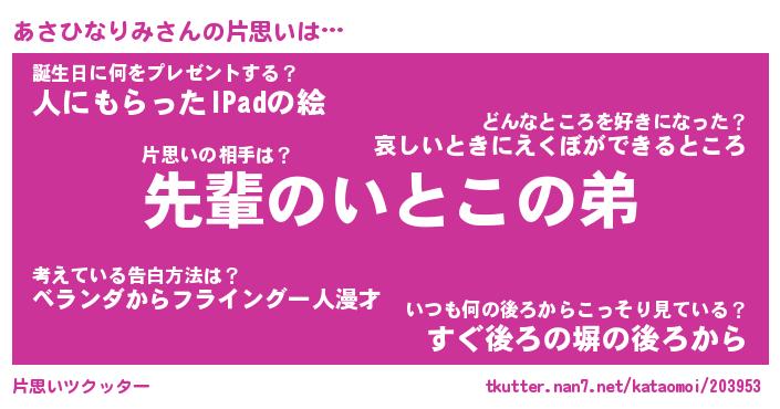 | 胡散臭い通販商品みたいなあだ名 | 『モテモテ間違いなし水晶球…その名も「あさひなりみ」』 |