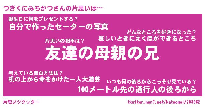 | 胡散臭い通販商品みたいなあだ名 | 『億万長者になれるブレスレット…その名も「つぎくにみちかつ」』 |