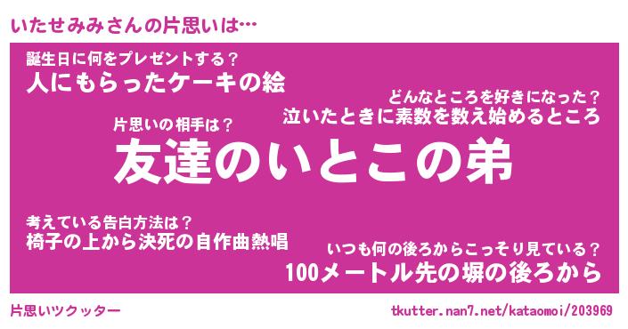 | ヘコむあだ名 | 『いたもー』『酢こんぶ』『いた太郎』 |