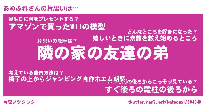| ポケモン風あだ名 | 『アメチュウ』『アメフダネ』 |