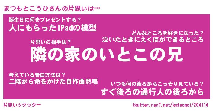 | 男性向けラノベタイトル風あだ名 | 『まつもとこうひの憂鬱』 |