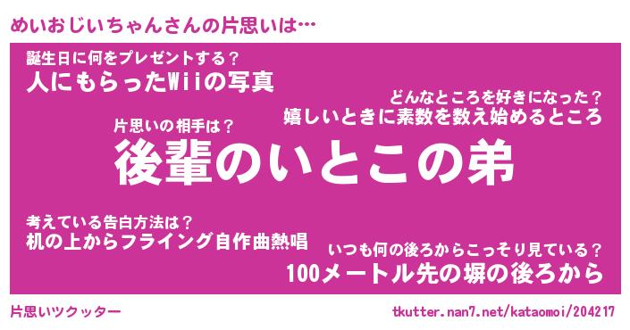 | 胡散臭い通販商品みたいなあだ名 | 『億万長者になれる水晶球…その名も「めいおじいちゃん」』 |