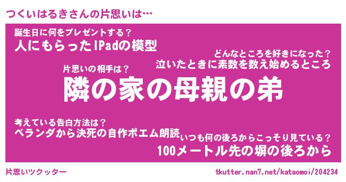 | 恥ずかしいあだ名 | 『プリティーつくいはるき』『つくっちょ』 |