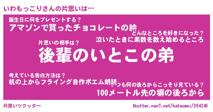 | ヘコむあだ名 | 『いわもー』『酢こんぶ』『いわお』 |