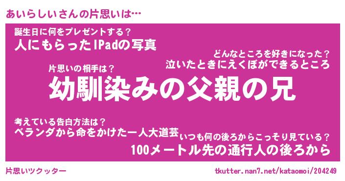 | ヘコむあだ名 | 『あいふぇ~』『牛乳』『あいっちょ』 |