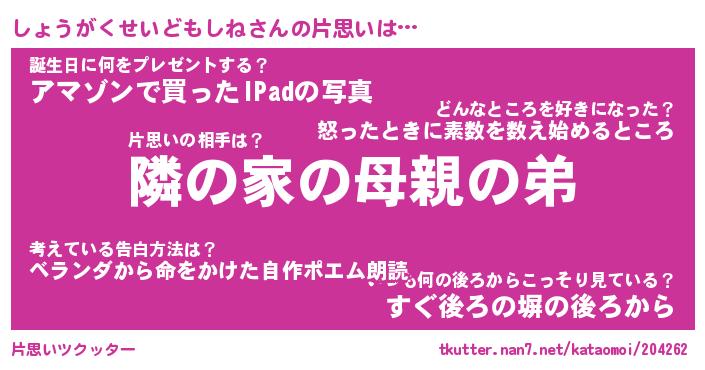 | 男性向けラノベタイトル風あだ名 | 『しょうがくせいどもしねの憂鬱』 |