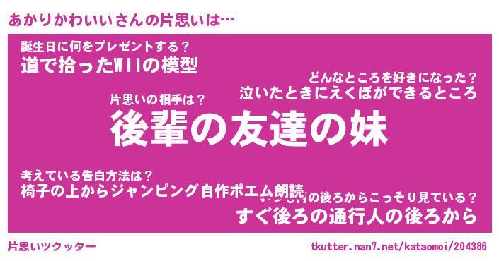 | 胡散臭い通販商品みたいなあだ名 | 『億万長者になれる霊験あらたかなお札…その名も「あかりかわいい」』 |