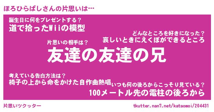 | ヒーロー風カッコイイあだ名 | 『スーパーホロヒラバシ』『魔戒騎士ホロ』 |
