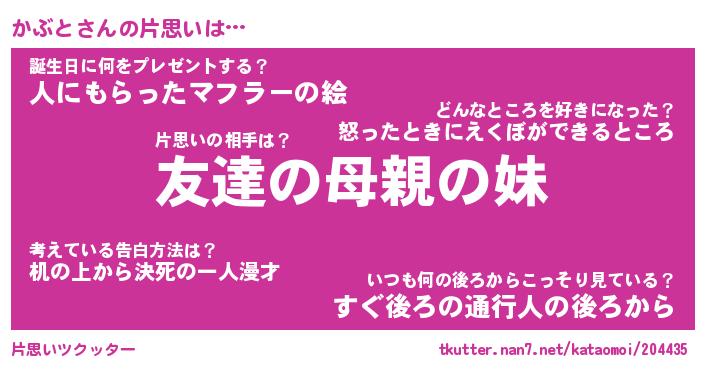 | ヘコむあだ名 | 『かぶにー』『酢こんぶ』『かぶ太郎』 |