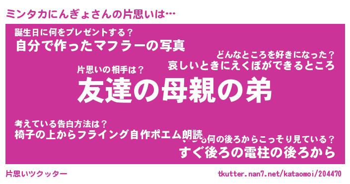 | ポケモン風あだ名 | 『ミンチュウ』『ミンタダネ』 |