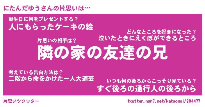 | 男性向けラノベタイトル風あだ名 | 『にたんだゆうの憂鬱』 |